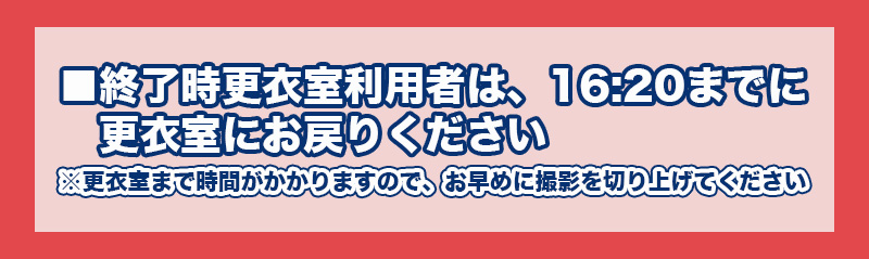 ※更衣室・クローク使用のリストバンドをお持ちの方は、使用の有無に係わらず16:20でお戻りください!